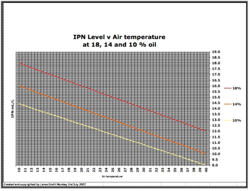 The graph below takes account of the oil level and the air temperature in working out the optimum DII level. Use this graph as a guide only, individual engines will behave differently so one must optimise the DII level to suit each individual situation.